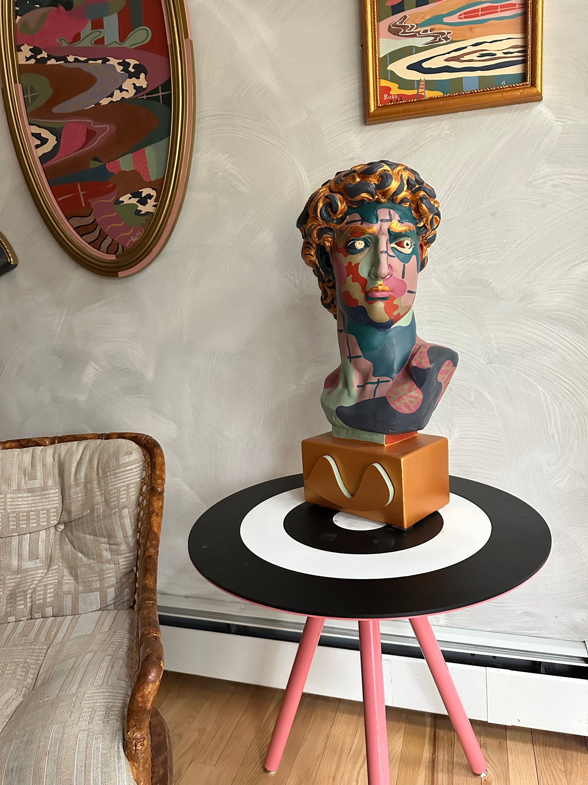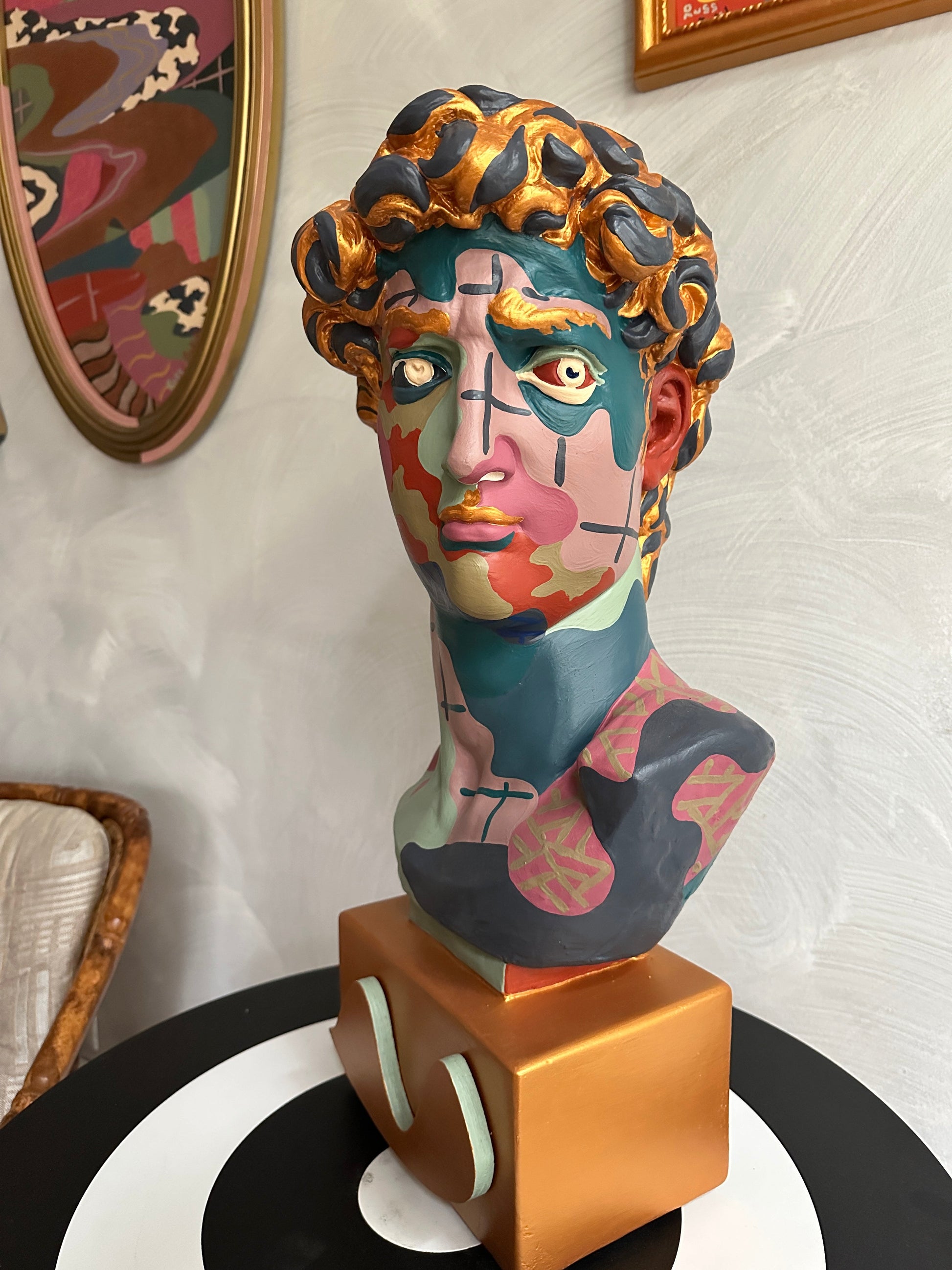 Acrylic and house paint on plaster