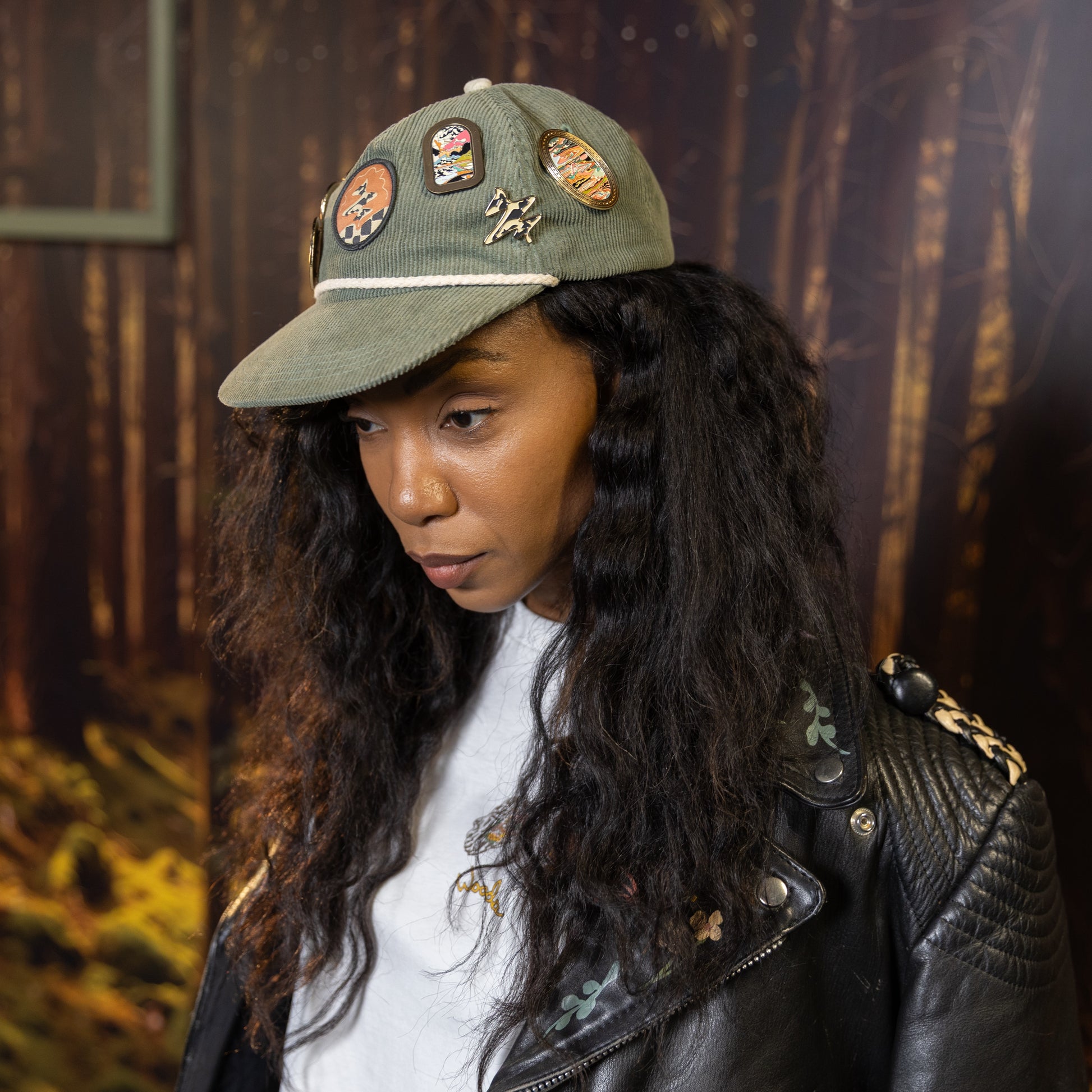 Get lost in the Green Cord Explorer's Hat. Each hat features custom two-tone snaps, hand sculpted brims, contrasting rope and button, and block printed tags from hand-carved stamps.