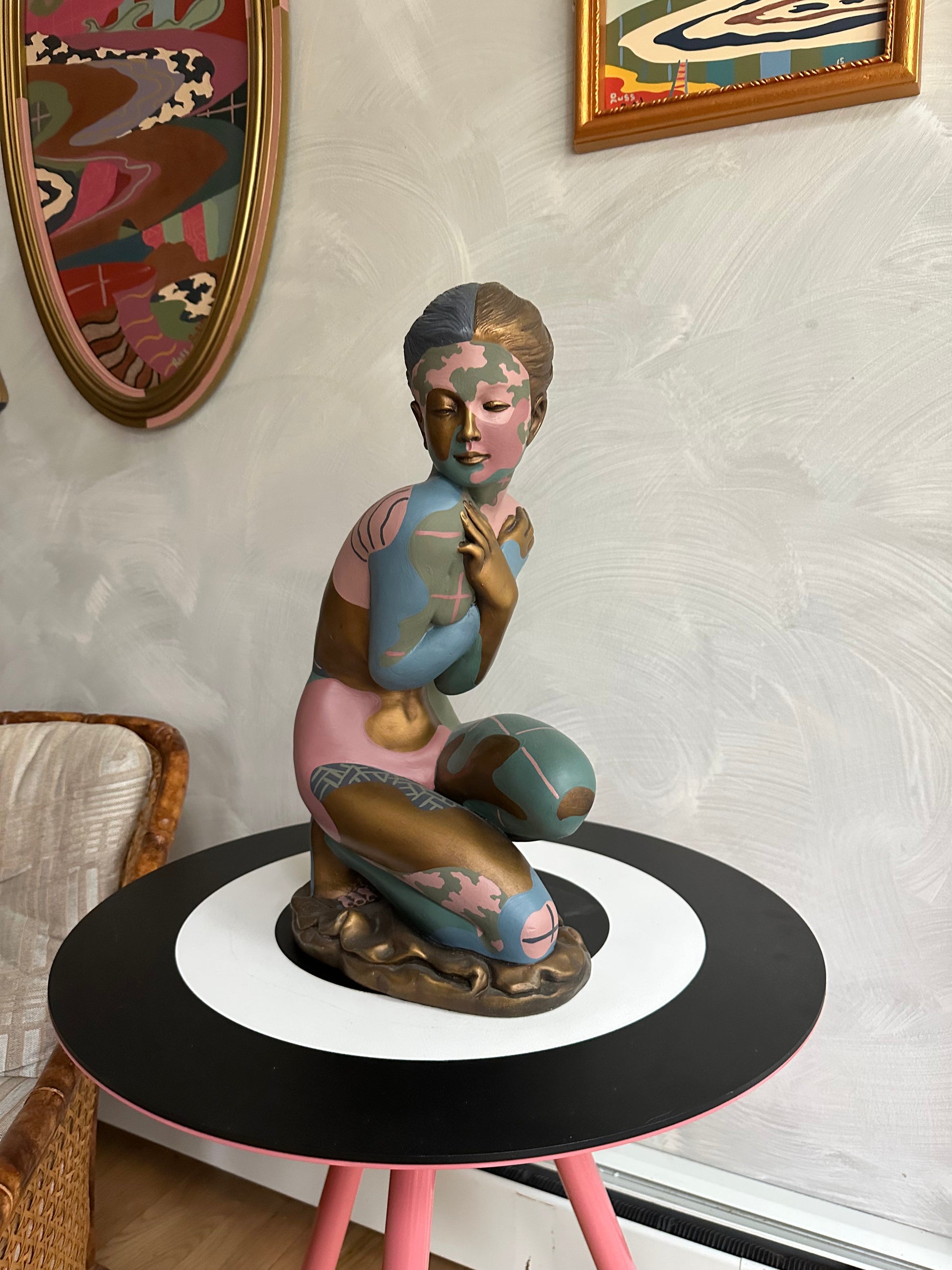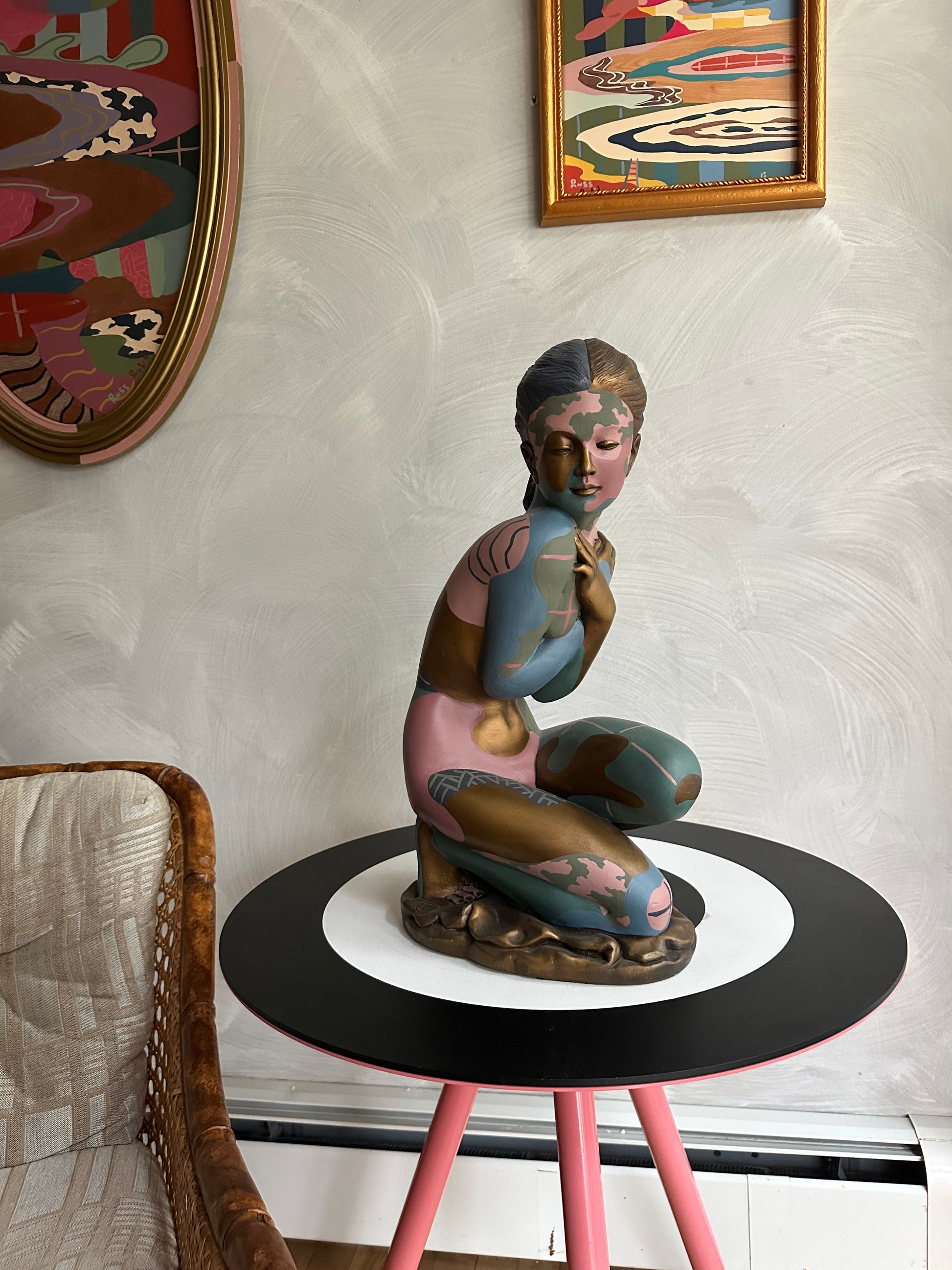 Acrylic and house paint on chalk ware